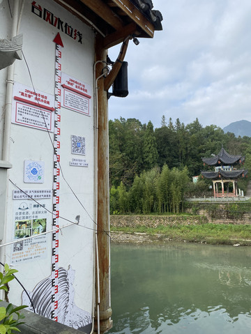 早餐选择了泰顺特色燕皮馄饨,感觉皮有点硬,没有福建的好吃。馄饨店就在溪边大桥旁,桥边白墙上赫然标着2005年“泰利”和2016年“莫兰蒂”台风时的水位线,简直太吓人了,我站在跟桥面齐平的位置拍的,水位线已经超过了我的头顶,可见当时洪水的可怕,怪不得三座廊桥毁于一旦。