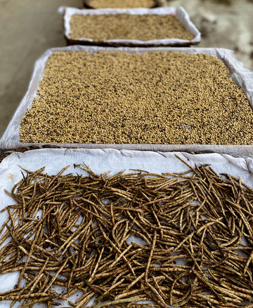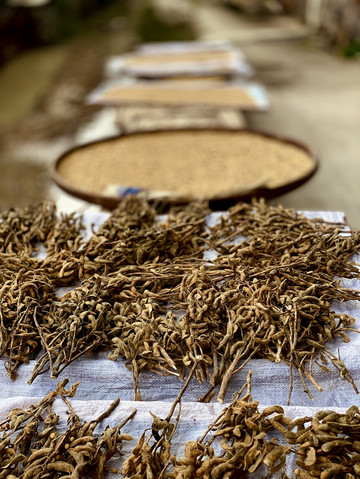 从大济出来时间不早了,故而放弃原本打算去的盖竹村坤德桥,直接奔向举水乡月山村。途径岭头乡杨家庄村时驻车寻访护龙桥。与前面遇到的村子不同,此村较为破旧,黄泥土房斑驳失修,在村里遇到村民正在晾晒一种叫槐树花的菌菇,类似平菇,正是上市的时候,穿村而过的小溪正在挖掘整修之中,问起村民此后是否会更好一些,村民却大都摇头不语。