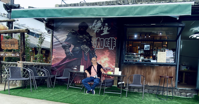 出得时思寺,同行友人要去雪花漈,因我多年前去过,嫌步行太累,便一人来到时思寺对面的咖啡屋,点了一杯双浓缩拿铁,坐着远观时思寺,一边与店主小哥闲聊,据他说,《黑神话:悟空》爆火后,来时思寺的人很多,最远的玩家从新加坡赶来,就是为一看此取景地。