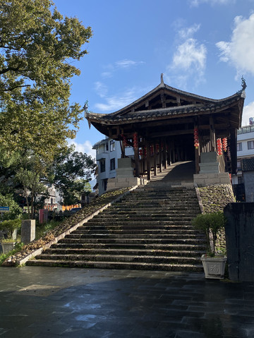 离开陈家铺村驱车到了松阳县与遂昌县交界处的界首村,一条千年古驿道呈东南—西北走向贯穿全村,道路两旁清代建筑风格的刘、张二姓氏宗祠、禹王宫、牌坊、古店铺、客栈、石拱门、震东女子两等小学堂等保存较为完整。村子整洁清净,公共设施完整,当天恰逢村里举办重阳节活动,中午请村里老人午餐聚会后,下午就搭台唱越剧,其乐融融,就是感觉几十位老人坐在大太阳底下看戏会不会太晒了点,哈哈。