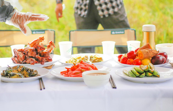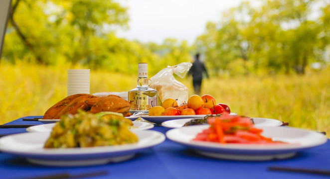 周围有湖泊,正好满足了后面车上的中年男人垂钓的爱好。我们站在旁边的树荫里准备一些晚上要吃的东西,准备食材的过程简单又快乐。
