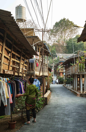 在得到大量土地出让费用和林木赔偿金后,重建的傣楼竟还能基本一致保持傣族传统风格,这得益于它隔壁邻居——一家全国著名旅游地产大咖对其布局规划和整体调性的说服教育。尤其村子里年代久远的老式吊脚楼,不是孤零零一栋两栋,而是成片作为古寨的“证据”而存在。最难得的是,这些老吊脚楼依然有原住民在此间栖息,地气接驳,毫无痕迹!正是这村子保留下来的稀罕“古”韵,惹得全国想拍写真的小姐姐们趋之若鹜。