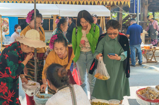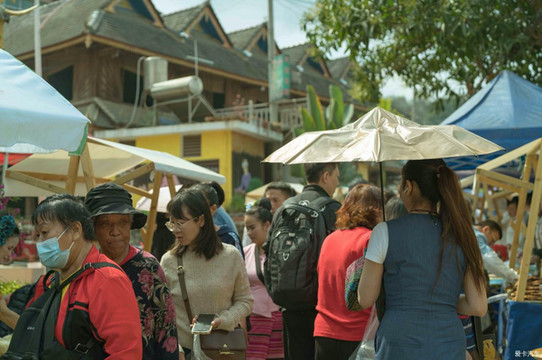 曼贺纳古寨赶摆,摩肩接踵,热闹非凡。