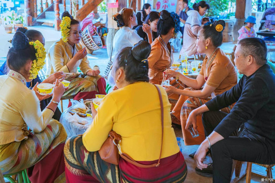 每周一两次赶摆,成为曼贺纳村民三朋四友聚集搓一顿的最佳理由。 傣族很多菜品汉人不知道咋吃,可参照她们的吃法,也可当面请教菜名、做法和吃法。