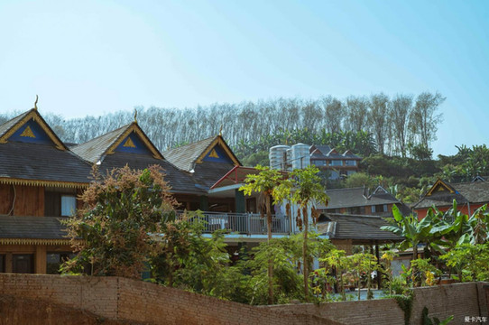 一是它们都在刻意与商业化保持一定距离的基础上,努力拥抱乡村游而凸显传统的傣族生活场景。其颇具宗教色彩的传统傣式吊脚楼,门前屋后种植的菠萝蜜、木瓜、杨桃、牛油果、芭蕉以及各种吊蓝花卉等热带雨林常见植物,成为游客打卡拍照的前景和主体。