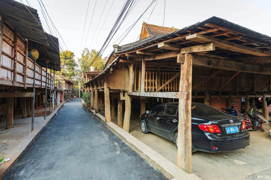 曼贺纳古寨的吊脚楼,百分之七八十是近十年在原址重建。从家家底楼都停有小汽车来看,当地村民比较殷实。富有的基础,大多来自整个村寨左右两边的大片土地出让,这从曼贺纳寨心竟然处在村子的最边缘处可窥端倪。
