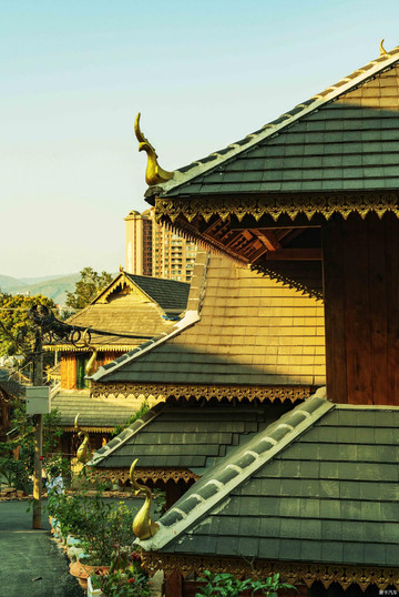 景洪市周边各具特色的这些傣族村寨,成为写真拍摄的最佳天然露天影棚,而距离景洪市区最近、位于西双版纳国际旅游度假区内的曼贺纳古寨,成为当然首选——首先是距离最近,二是免费,三最重要,因为它是景洪市区曼弄枫九寨中城市化程度最低的绝版傣族古寨——现代与古老在这里完美握手——它的邻居,首先是西双版纳州际大酒店,其次是央企民企房地产的top1,他们新建的度假类别墅和高楼群落,像篱笆一样,把这个村寨围得结结实实。