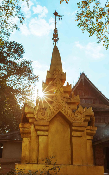 西双版纳告庄西双景大金塔一角。