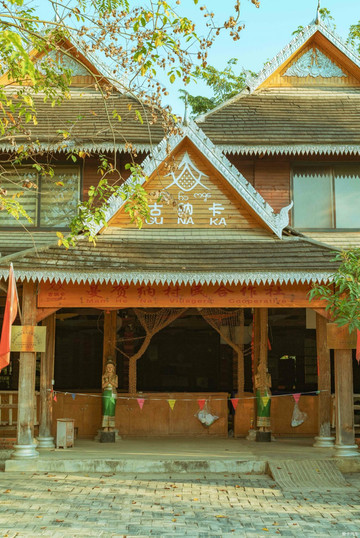 曼贺纳古寨近几年新建的木制傣家楼,在政府开拓乡村游的政策指引和基础设施建设投入铺垫下,一些变成了摩旅客栈和民宿,一些人家把底层做成了傣味餐厅、傣陶坊、甜品屋、服饰店,以及古寨内充满文化韵味的古井,专门开辟的传统制银、织锦技艺,保留下来的傣族酿酒坊等民族文化,使之成为景洪市社会主义新农村建设的模板。