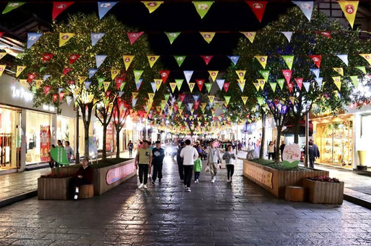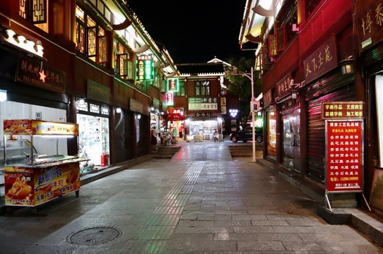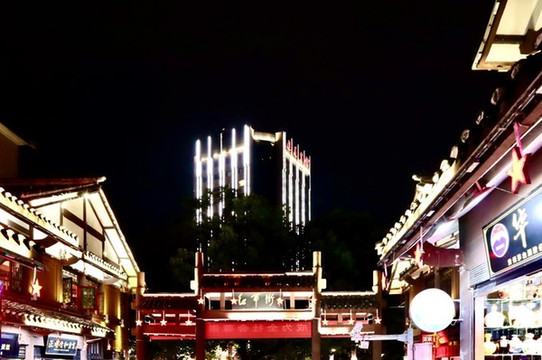 旁边有一个新打造的金鼎古镇,是一条购买吃喝玩乐旅游纪念品的商业街。