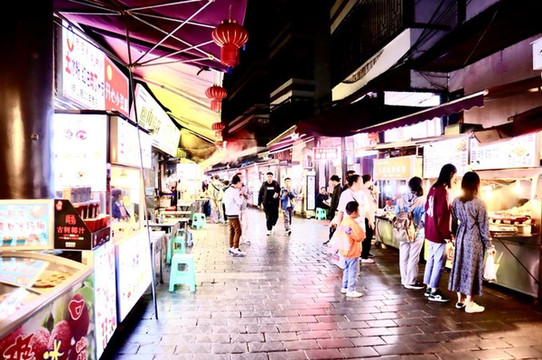 这条巷子虽然窄,但是长,琳琅满目的两旁都是各种小吃,人潮涌动,热闹非凡。
