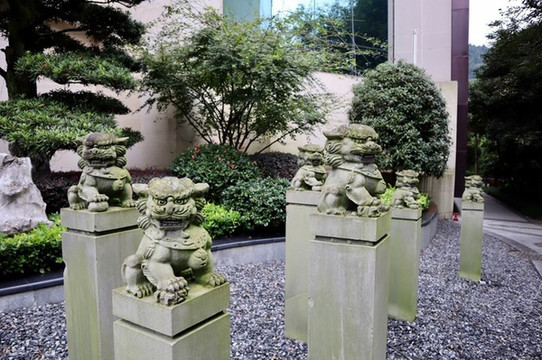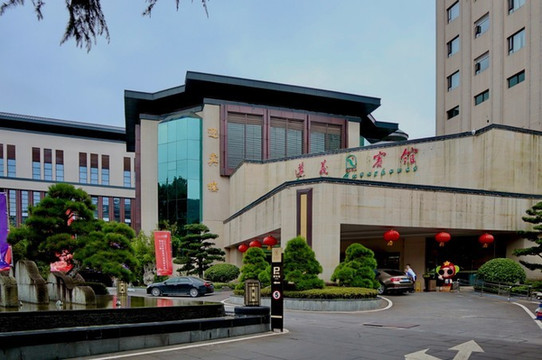 宾馆按三星级标准兴建,融五栋不同风格的现代建筑与园林建筑一体。所以 ,门口就是一个园林。