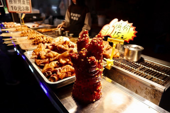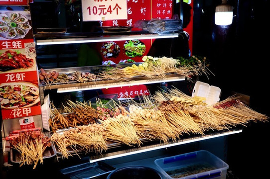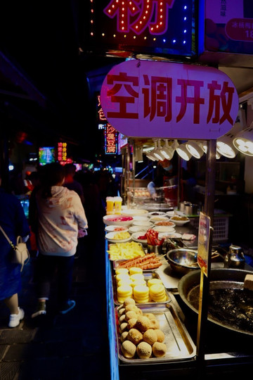 两旁最多的就是各种油炸食品,烧烤类居多,口味都比较“重”的那种。