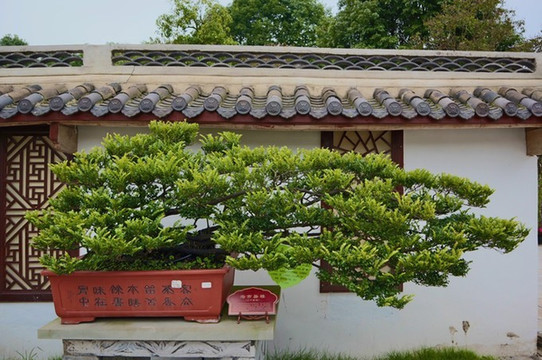 金弹子、五针松、火棘、紫荆等品类繁多经过精心培植、修剪、造型,变身一盆一盆精致的艺术品。