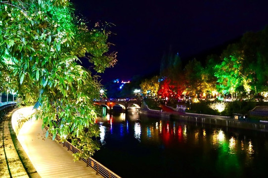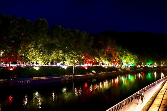 回遵义宾馆路上,沿途的湘江河畔,在夜灯下很美。