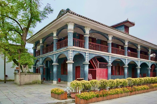 这里真的是满眼绿色,树木葱茏、青砖青瓦,黔北民居的建筑特色,橙红色的木质亭台、雕花、坡面顶古朴别致,以黔北苟氏盆景闻名。