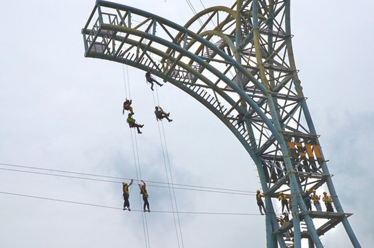 据介绍,该基地占地169.5亩,是AAA级景区,是"全球第二、亚洲第一、全国唯一”的专业绳索训练基地。这里有有综合训练中心,绳攀训练塔,地质科普长廊,湿地公园等多个景点,在这里,可以享受美景,可以挑战极限运动,感受惊险刺激,还可以在专业团队的辅导下体验专业野外求生课程。