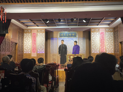 下午我们去看了相声,第一次看相声感觉还挺新奇,桌上还放了瓜子和茶水 。 看完相声我们就去了意大利风情街 。街上有许多酒吧,可以听听歌,喝点酒。感受每个城市的不一样。许下心愿,在一个陌生的城市留下痕迹。