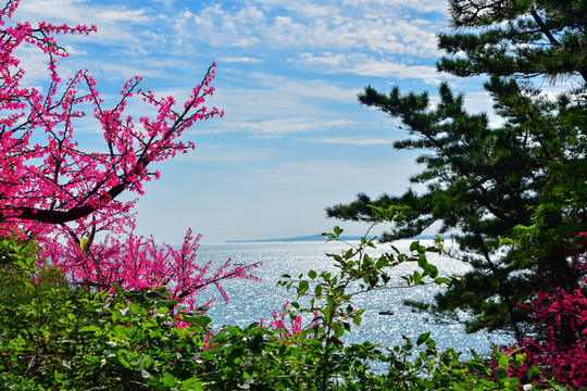沿山径下山到海边,走玻璃栈道到长山尾,近距离感受黄渤海交汇相融。