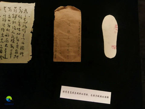 馆内另一侧,陈列着刊登当时战争形势的大众日报、保育员为乳儿做鞋的鞋样,以及乳儿寻亲笔记及信件……