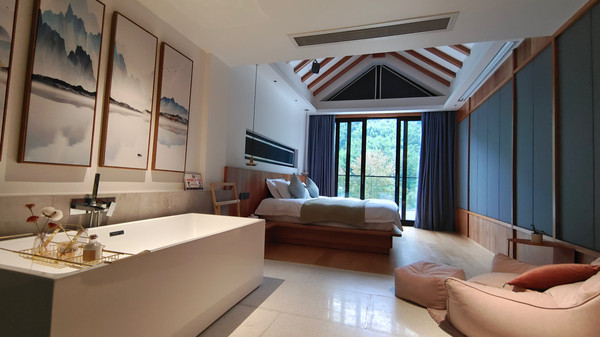 周末一家人自驾来此处游玩,亲子大床房,外设开放式大阳台,露天泳池,闲暇之余陪伴亲子时光。还有单人大床房,屋内设有大浴池,释放在城市的压抑感,呼吸大自然新鲜的空气,回归山野之中。