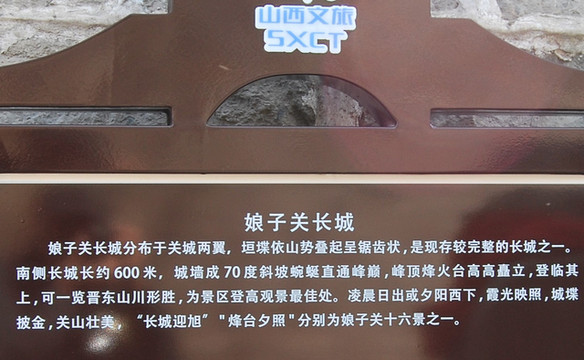 娘子关,万里长城著名关隘,位于山西阳泉市平定县东北的山峦之上,原名“苇泽关”。唐朝平阳公主曾率兵驻守于此,平阳公主的部队当时人称“娘子军”, 故得今名。娘子关有万里长城第九关之称,是三晋门户和交通要隘,为历代兵家必争之地。