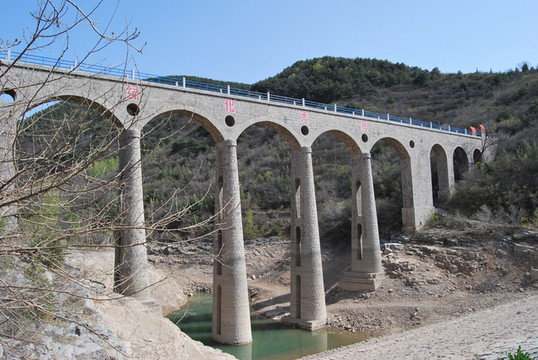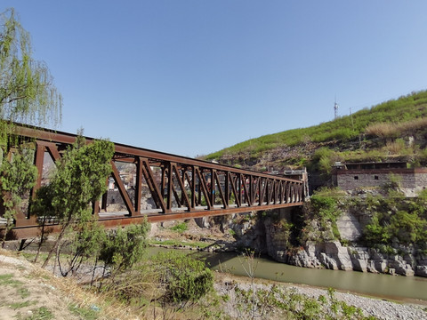 乏驴岭铁桥,1904年由法国人设计建造,一座最初的正太铁路桥。当年,正太铁路的窄轨小火车通过此桥跨过绵河,穿过乏驴岭隧道向东延伸而去。