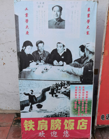 铁肩膀饭店,“铁肩膀”是社员们对党支部副书记梁便良的爱称,梁便良已逝去,饭店是他的儿媳妇在他家原址开办的。