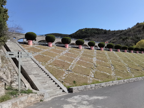 虽然未上到最高处的烽火台,在这里观景效果也很不错,群山起伏,河流欢畅,长桥横卧,铁路远去。