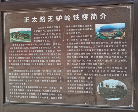 这座百年铁桥见证了当年八路军抗击日寇的英雄壮举。1940年8月20日夜,百团大战打响,八路军杨成武部下属二团将驻乏驴岭三个据点(铁桥、火车站、岭东据点)的日军全部歼灭。至今,距村子不很远处,还有一座保存完好的日军炮楼。