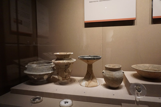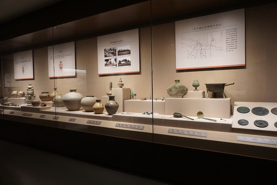 展柜中展出的就是秦汉时期遗留下来的土墩墓葬中出土的部分文物,反映了汉代的陪葬习俗。