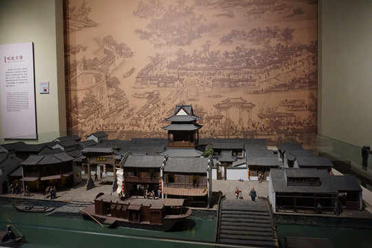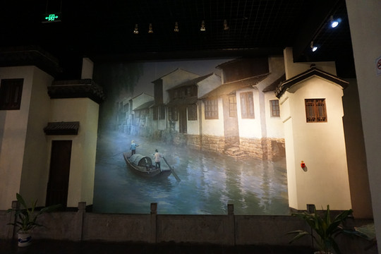 规划馆一楼展示常州悠久的城市历史。通过布景展现了常州运河人家的场景。