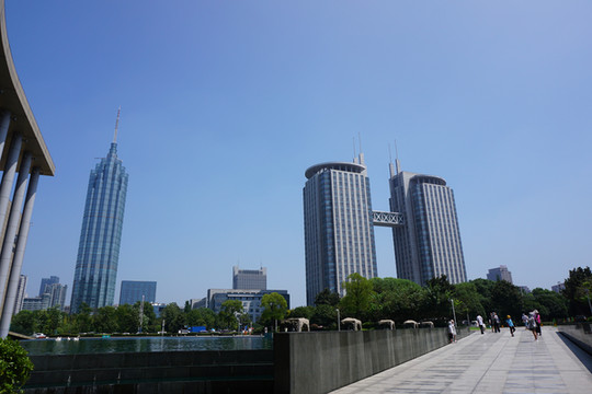 博物馆得天独厚的位置,周边都是常州标志性的建筑。站在广场上环顾一周,昨天我特意经过的会展中心。