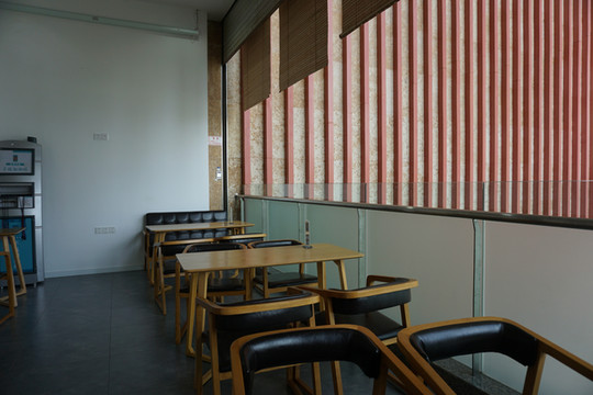 小憩,透过博物馆的玻璃窗望向城市美丽的风景。