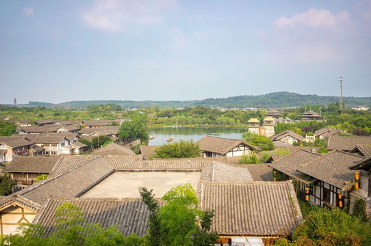 整个景区里都是古色古香的建筑,亭台楼阁各有特色。
