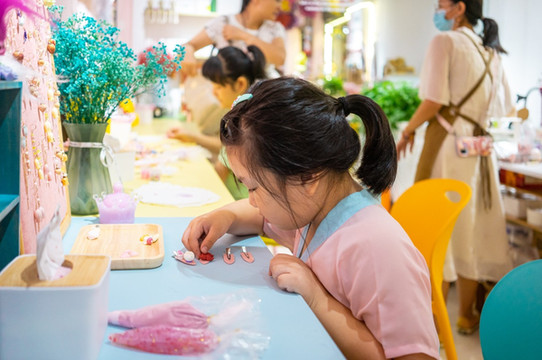 除了售卖各式各样可爱的发卡、镜子、手机壳等等日用品之外,也可以自己上手制作,不同商品价格不同。心心对这里可是恋恋不舍,做完了两对发卡还是问了妈妈可不可以再做个东西。