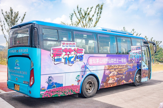 也是赶巧,刚好碰上茅山旅游度假区的绿野仙踪号巴士正式运营,这是一条旅游专线巴士,全程约41公里,几乎涵盖茅山的所有景点。实行上车投币或扫码的收费方式,2元/人。