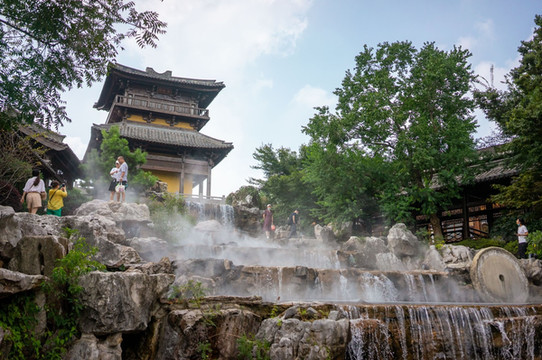 喜泉阁也算是东方 盐湖城 的标志景点,下方层层瀑布,仙气阵阵弥漫,迎合了逍遥仙镇的主题,增添了一番韵味。