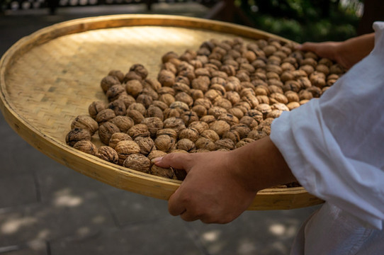 一般医生都会在这里,在这片景色下,医生闲暇之余还会做些生活乐事,这不刚好收获了一些山核桃正准备放在太阳下晒干。