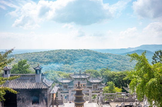 走到高处,远眺山景,更有一种怡然自得的舒心。偷偷看到广场上的道士悠闲扇着风休息着,很应景。