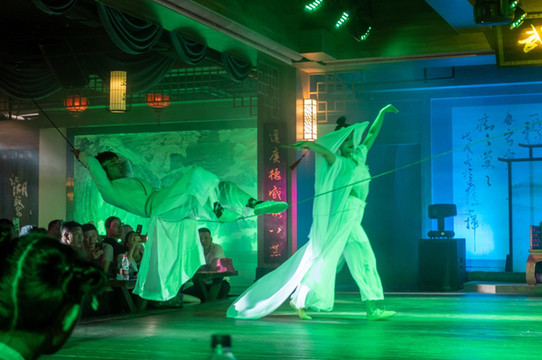 一定一定,来这家逍遥阁,吃一顿江湖盛宴。乍一看你可能不明白一个餐厅而已有啥特色,这是个以武侠为主题,除了美食还能够看表演,边吃遍看的同时,还有互动体验,让游客在道家逍遥快活的氛围中,一起吃一顿江湖美食。