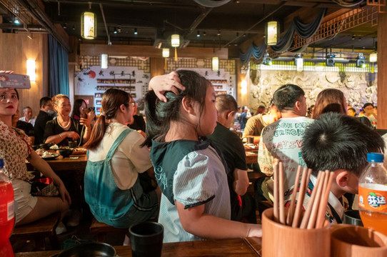我跟你讲,餐厅的生意特别火,需要购买餐票才能进入。