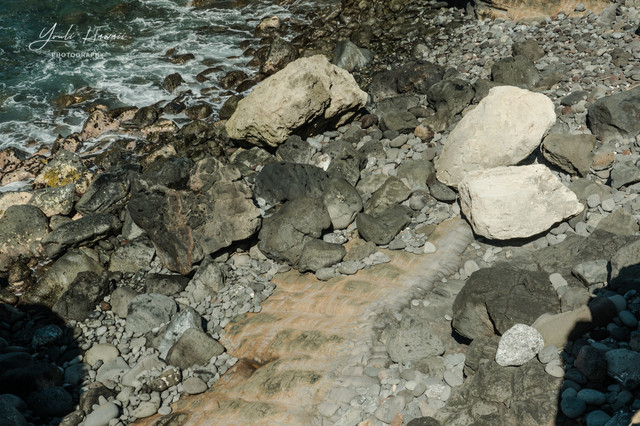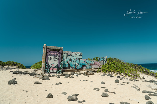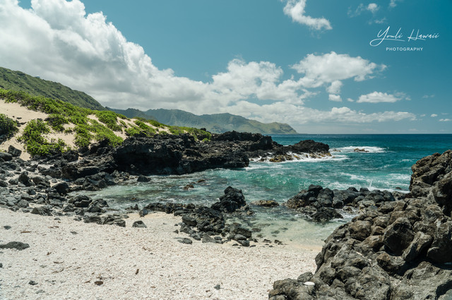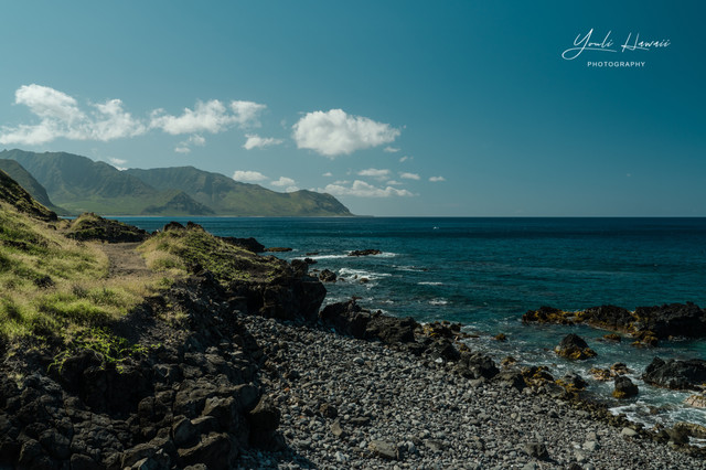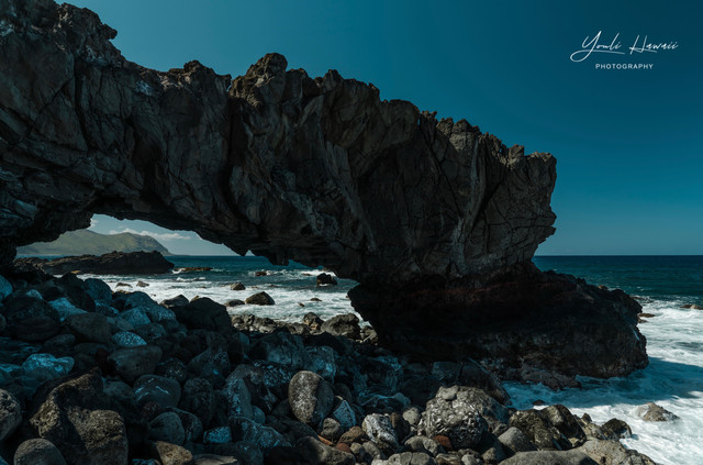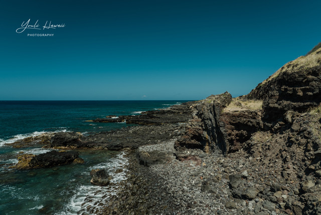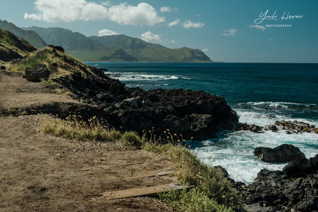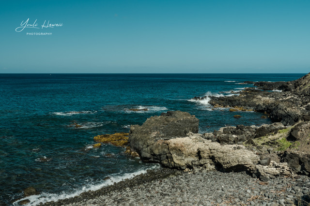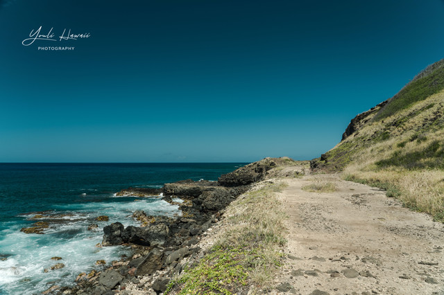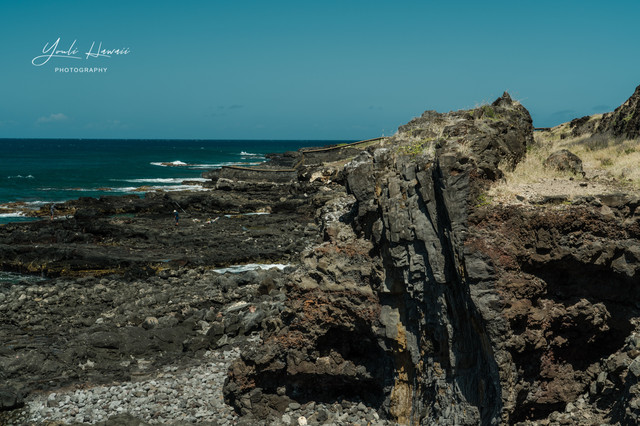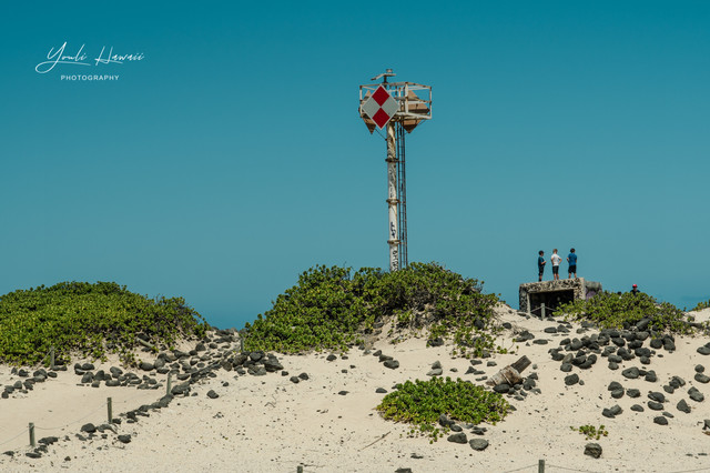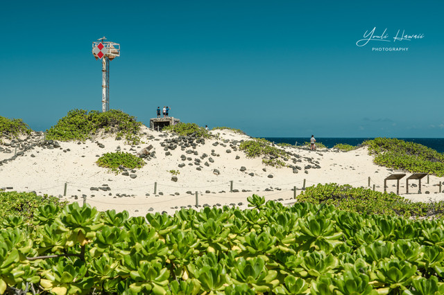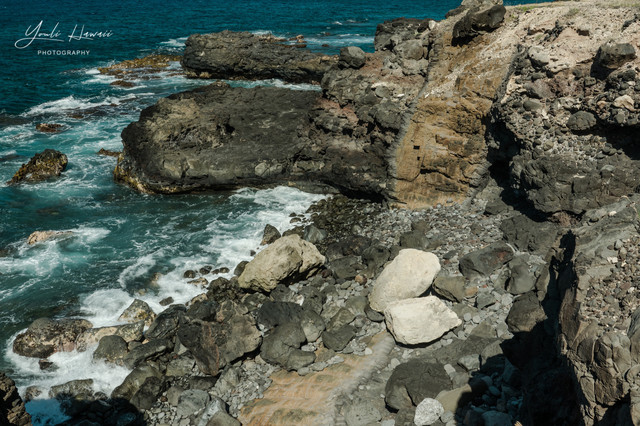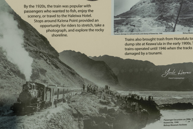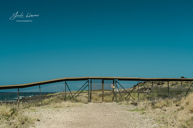 Kaena Point Trail西线单程约有3.8公里,这条路线的地势相对比较崎岖狭窄,紧邻海边悬崖,沿途主要是卵石滩、礁石滩和一些潮汐池,还有一处天然的海拱门。以前在日本1943年出版的夏威夷地图上无意中发现,原来20世纪上半叶的Kaena Point 是通火车的,这条铁路建于1899年,最后毁于1946年的海啸,如今在Kaena Point Trail西线的沿途还可以见到一些铁路残留的枕木。这一次是通过Kaena Point Trail西线徒步到达的Kaena Point,上一次通过西线徒步到Kaena Point还是在2014年了。以前虽然经常带人到Kaena Point Trail西线拍照,但是都没有走到尽头处的Kaena Point。到这里徒步一定要做好防晒措施及带上充足的饮用水,沿途比较干燥炎热,也几乎没有树荫。另外,因为Kaena Point是自然保护区,为了保护野生动物,不允许带狗进入公园。