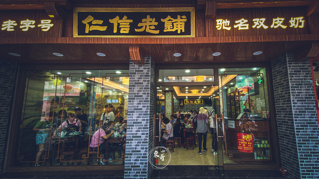 顺德是一座大街小巷都弥漫着双皮奶飘香的城市,只要在这儿我才能放弃我的乳糖不耐受,痛快的吃上一碗。仁信老铺就是当地非常出名的甜品店之一,也曾在纪录片《寻味顺德》中被收录。用餐高峰期间,这里几乎是一座难求,需要靠得自己的一双明目,找到座位,然后叫服务员点餐,最后再拿着小票到前台付款。