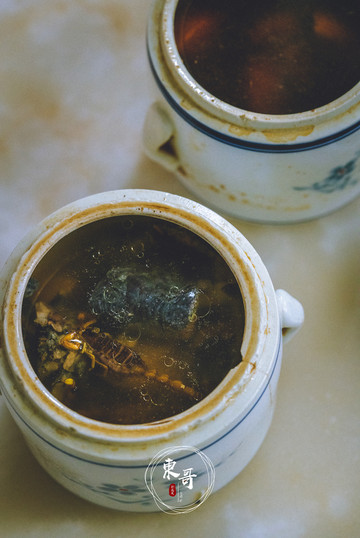 吸引我来这里最大的动力就是这份党参乌鸡炖蝎子,据说可以清热解毒,很适合这个季节。汤盅端上桌后,撕开封纸,就可以看到汤底里一只只的黑蝎子。之前吃过炸蝎子,金黄酥脆。这炖蝎子还真是第一次尝试。