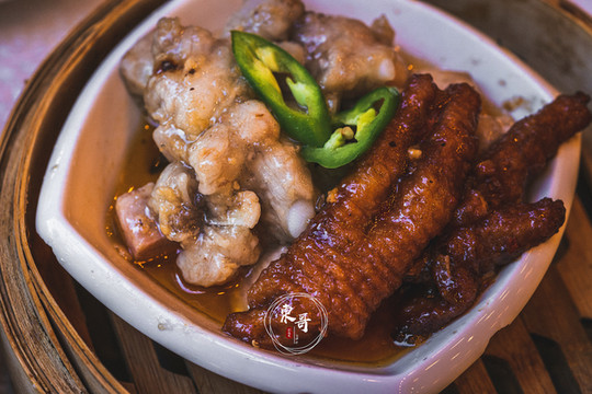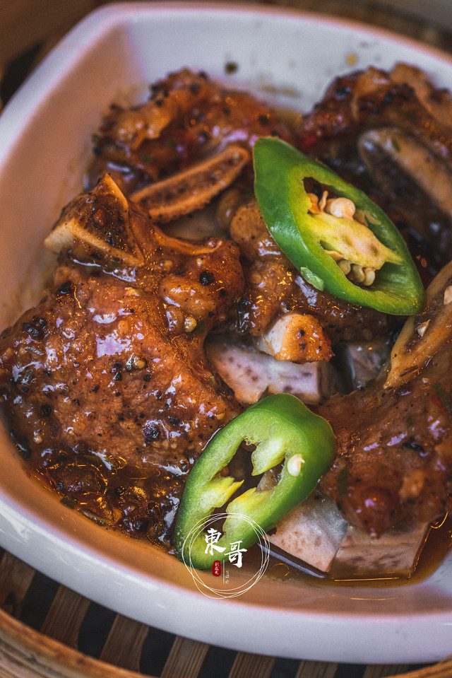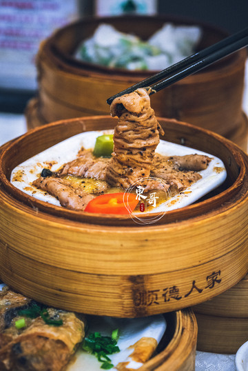 大肠也是我很爱的一道点心,食材事先清洗的十分干净,没有内脏的腥臭味,搭配黑椒的调味,经过蒸制后,软糯劲道,黑胡椒辛辣的滋味和大肠搭配的相得益彰,十分巧妙。