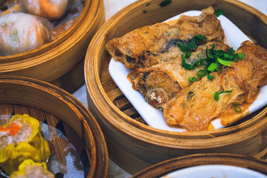一些常规的点心同样做的可圈可点,烧卖和腐皮卷是我的最爱。烧卖内馅饱满,虾肉颗粒爽脆新鲜,汁水丰富。腐皮卷则咸鲜入味,豆腐的香气和汁水的滋味都恰如其分的沁到内馅之中,格外精彩。