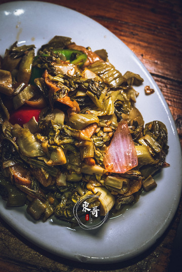 让我印象很深的是这道酸菜炒大肠,酸菜发酵的香气和酸爽的滋味恰到好处的中和了大肠的油腻,大肠爽脆有嚼劲,配上一碗米饭简直是完美!