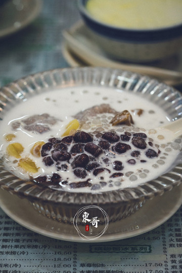 不过我们来的时间刚巧是午饭前,所以店内还没什么客人。下午再路过这里的时候,发现里面已经坐满了人。红豆双皮奶是这里的人气款,水牛奶制作的双皮奶鲜甜可口,不得不再次感叹,顺德是一座大街小巷都弥漫着水牛奶飘香的城市。香甜的红豆配上顺滑的双皮奶,那种沁心入脾的极致享受,真是让人沉醉。