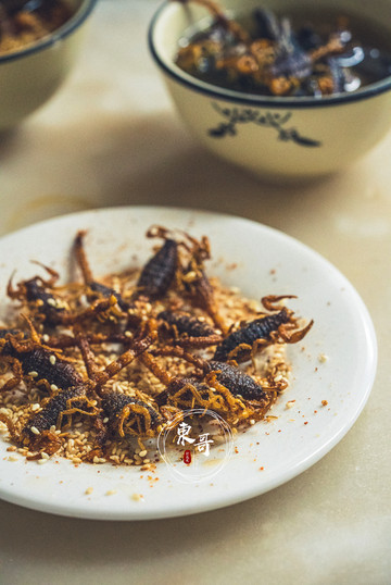 更重口味的来了,炸蝎子隆重登场。尝试过了炖蝎子后,基本已经百无禁忌。直接挑起一只开始咀嚼,油脂的香气伴随芝麻香瞬间弥漫在口中,酥脆的口感也加分不少,比汤底里的蝎子好吃很多,今天这一顿可真是清热解毒到了极致。